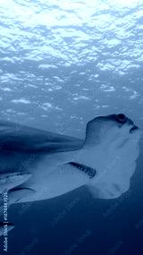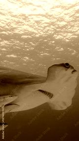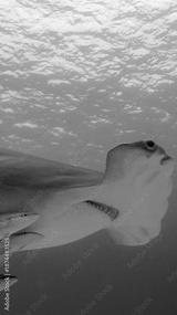 A 9:16 Portrait image of a Great Hammerhead (Sphyrna mokarran) in Bimini, Bahamas