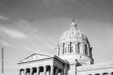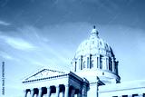 Close-up of the Missouri State Capitol building in Jefferson City under a clear blue sky.