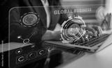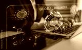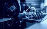 Global business partnerships and international trade concept. A dashboard for worldwide market analytics, data visualization, and company strategy. Motif