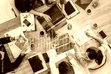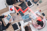Economic caution visualized with fluctuating market graph, alert symbols, and negative data trends. Represents financial risk, market volatility, and economic uncertainty. Spline