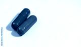 Red and Blue Pill Capsules on White Background with Strong Shadows