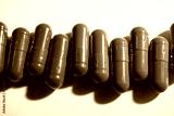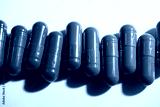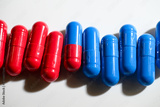 Red and Blue Pill Capsules on White Background with Strong Shadows