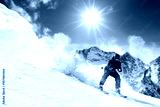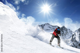 A skier sliding down a mountain slope, ski season and great fun in the snow in winter.