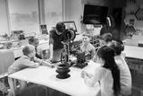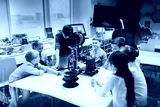 happy children with 3d printer at robotics school