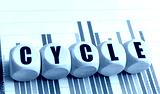 Cycle word on wooden cubes placed on multicolored financial bar chart background