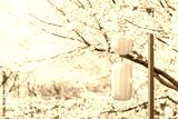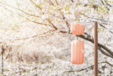 Decorative lanterns at the Sakura cherry blossom blooming Festival on a clear spring day