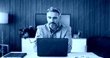 Man, reading and employee with laptop, office and research for risk assessment on website and online. Business, financial analyst and mature person with tech for budget review and wealth management