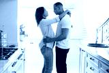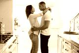 Side view of romantic young african american man and woman embracing while dancing together at home