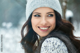 beautiful smiling young woman in wintertime outdoor. Winter concept