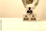 employee analytics, select candidate concept of HR recruitment, evaluate, performance, probation, and appointment, search for a leader