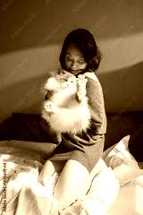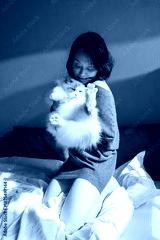 Happy Woman Holding Playful Ragdoll Cat Showing Pink Paw Pads on Bed in Morning Sunlight
