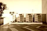 Row of air conditioning units on rooftop