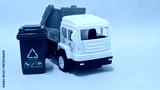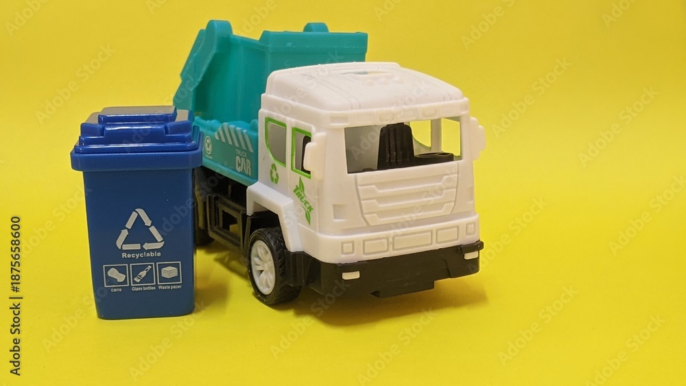 Eco-Themed Toy Setup with Recycling Bin and Truck Illustrating Waste Management Concepts in Playful Form