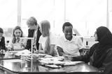 Diverse students in a science class, working together at a lab table. Engaged in experiments, the group includes both male and female students in bright classroom. Diverse students in lab, education.