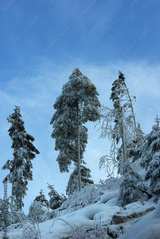 Snow Covered Fir Trees Under Blue Winter Sky
