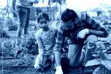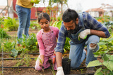 Indian father and daughter gardening together at house organic garden - Education, family lifestyle and vegetable food concept