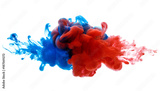 Symbol of rivalry and struggle or merging of a compound. Ink in water red and blue isolated on white