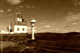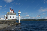 Filtvet Lighthouse and Modern Beacon on Stone Pier Overlooking Oslofjord Norway Summer Day