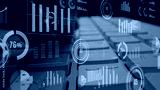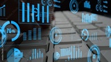 A close-up view of a keyboard overlaid with futuristic blue data visualizations, including graphs and metrics, exemplifying advanced data analysis and technology. Xenic