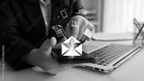 Visual representation of modern digital communication, featuring a person engaging with a smartphone and laptop, emphasizing email management and notification handling. Gantry