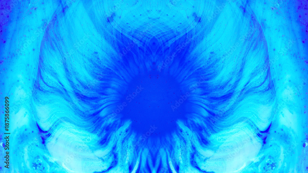 Abstract blue space background with colorful feather textures