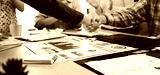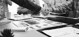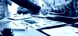 A successful meeting atmosphere captures business professionals shaking hands over financial reports, signifying collaboration and achievements in a modern office setting. SACTR