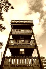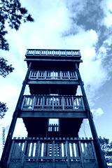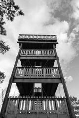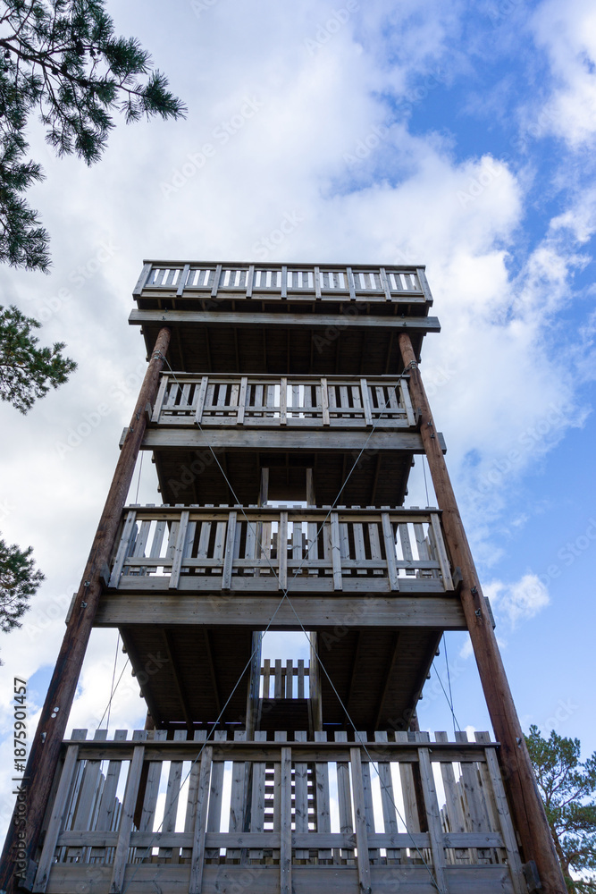 Low Angle View of Wooden Hjells Hill Observation Tower Hjellsåstårnet in Norway Against Blue Sky