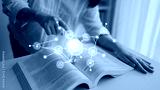 A creative representation of knowledge sharing through an open book with virtual icons and connections, symbolizing digital interaction and innovative learning. Tessel