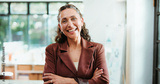 Happy woman, portrait and pride with confidence for company development, finance or revenue service. Female person, accountant or financial planner with arms crossed for analytics or performance