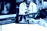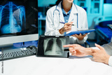 Professional doctor examining patient with stethoscope in modern clinic, healthcare consultation, medical checkup, diagnosis, trust, technology and wellness care.