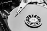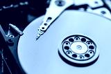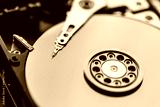 Close up on opened hard disk drive.