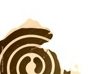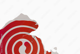 Close-up view of torn piece paper sticker fragment on white. Ripped spiral sticker with visible tear marks and grunge damage on white background, vintage branding