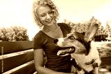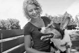Love, woman and relax with dog on park bench for animal adoption, connection and bonding together. Cardigan corgi, pet and happy person in nature with companion, smile and foster care outdoor