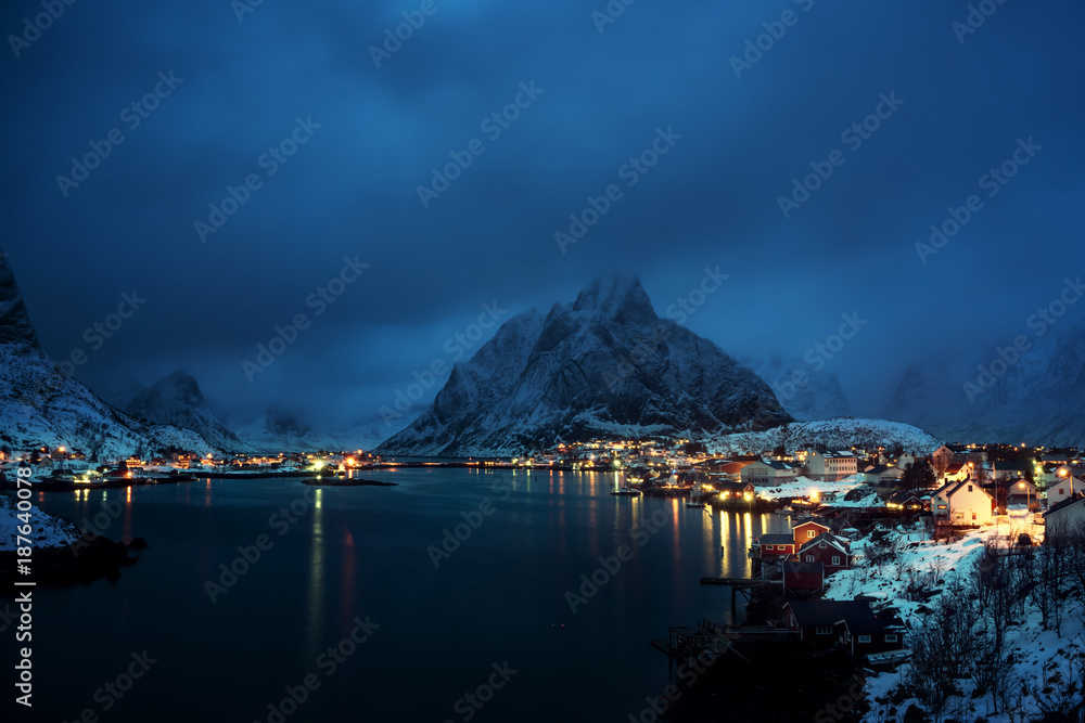sunset in Reine Village, Lofoten Islands, Norway