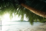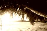 sunset on beach Anse Takamaka, Mahe island, Seychelles
