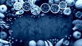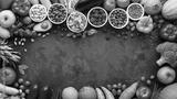 Healthy eating ingredients: fresh vegetables, fruits and superfood. Clean eating and detox. Nutrition, diet, vegan food.