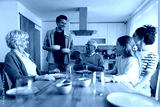 Multi-generational family preparing for lunch in modern kitchen