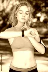 woman setting up the fitness smart watch for running