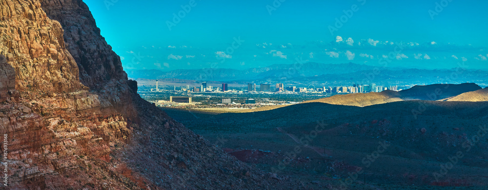 Aerial Panorama Red Rock Canyon Las Vegas Strip Desert Landscape