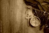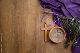 Lent season cross ashes purple fabric wood