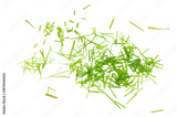 Fresh green young wheat leaves, isolated on white background and texture, top view, design elements