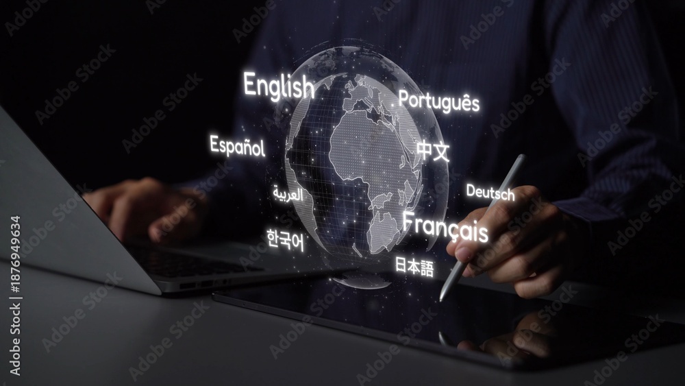 Global communication with multiple languages, digital translation tools, multilingual technology, cross-cultural communication, and virtual language learning environments. Muxer