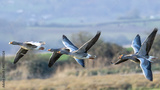 Greylag geese in a fly by. Largest native UK goose.