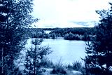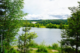 View of the Silbersee (Silver Lake) near Villach and the surrounding landscape. Nature in Carinthia near St. Ulrich in Austria.