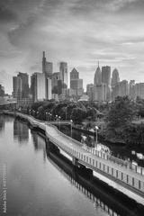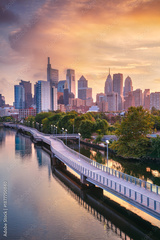 Philadelphia, Pennsylvania, USA. Cityscape image of downtown Philadelphia, Pennsylvania and Schuylkill River leading to the city at beautiful autumn sunrise.