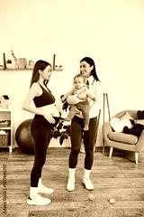 coach and mother joyfully preparing for new beginnings in a cozy living room filled with love