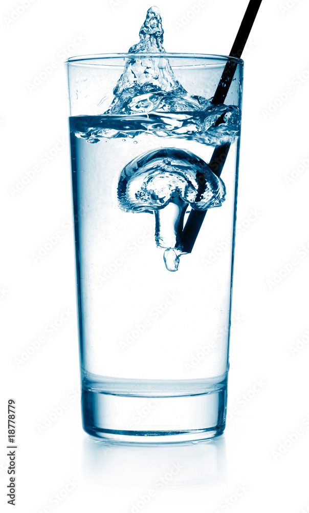 bubbles in a glass of water isolated on white.