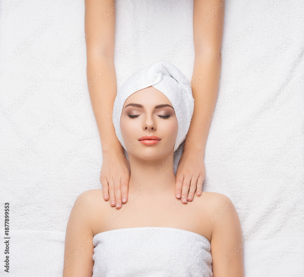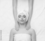 Woman getting face massage treatment. Person in spa. Healthcare, healing, and medicine.