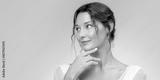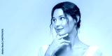 Smiling Woman Touching Chin With Gentle Expression And Healthy Glowing Skin