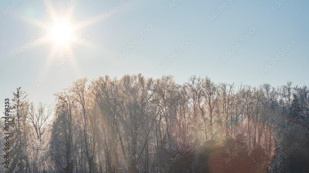 A frosty morning in Minsk covered with snow.